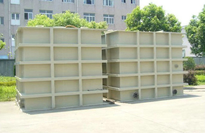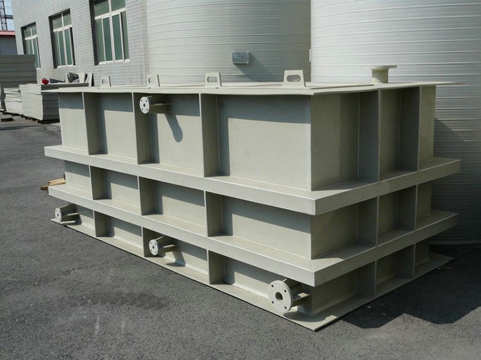 一種工業廢水降解槽,包括鼓泡池,所述鼓泡池內設有隔板,所述隔板將所述鼓泡池分割為若干分布于同一直線上的水槽,所述水槽設有溢流口,相鄰的水槽中的溢流口沿垂直于溢流槽分布方向的方向錯開,溢流口部位距離水槽底面的高度為6~13厘米。水槽分布于同一直線且溢流口彼此錯開,能夠優選防止廢水流過水槽時產生回流現象。水槽內的水深只能為6~13厘米。更容易混合均勻,且不容易生產噴濺現象。