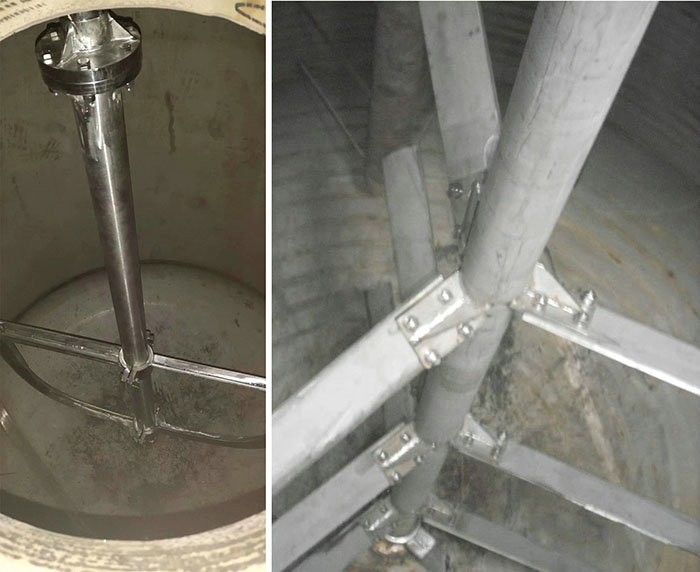 常規(guī)的攪拌形式有錨式、槳式、渦輪式、推進式、框式等,攪拌裝置在高徑比較大時,可用多層攪拌槳,特殊產(chǎn)品甚至會使用較為復雜的MIG式攪拌。